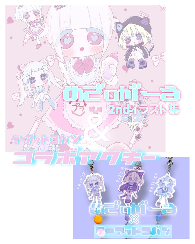 Illustrator えぴねる研究所様との待望のコラボ企画第2弾︎︎☁️ 『めでぃが~る』各キャラモチーフのおくすりを、ケーアットコバンが製作❕えぴねる研究所さまのアクキーにぶら下げちゃった?! 『めでぃが~る』おなじみばってんも再現してみたよ❣️ 豪華過ぎる、可愛すぎるコラボキーホルダー✨️ ほんとにかわいいからGET必須だよ.ᐟ.ᐟ (最後の画像は、付属哺乳瓶チャームのイメージを伝えるための参考画像です。実際の商品では、アクリルキーホルダーに哺乳瓶チャームが付属しています) 全6種♡♡