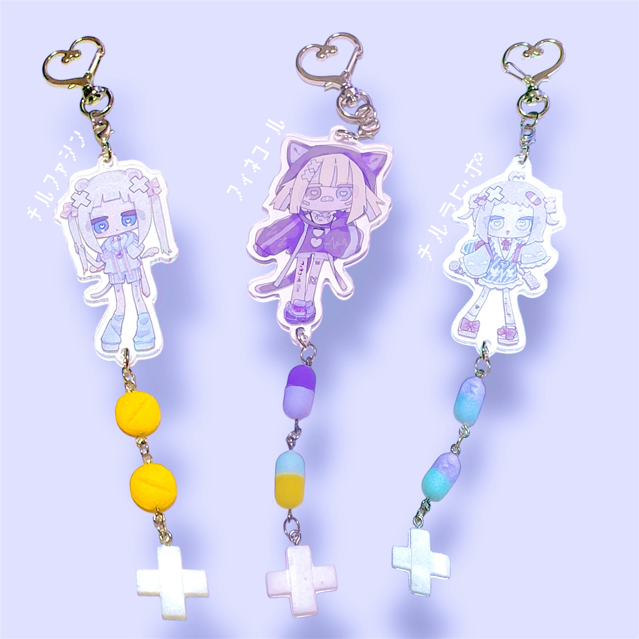 『めでぃが~る』各キャラモチーフのおくすりを、ケーアットコバンが製作❕えぴねる研究所さまのアクキーにぶら下げちゃった?!